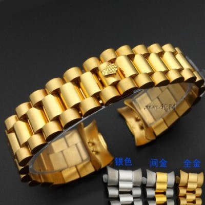 Home > Watch > others > Suitable for timekeeping straps, suitable for Rolex calendar steel straps, watch accessories, three beads, watch chain, 20mm men's full gold(2 шт.)*2