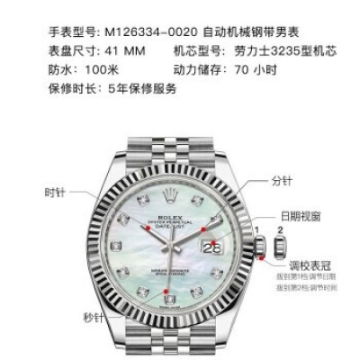 Home > Watch > cell phone > Swiss Rolex Watch Datejust 41 Series Automatic Mechanical Men's Watch M126334-0020 White Pearl with Diamond Five-Grid Chain