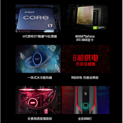Home > Digital > computer > Acer (Acer) Shadow Knight Brand new N97 gaming computer desktop water-cooled host (12th generation i7-12700 RTX3060 16G memory 512G solid state side water-cooled heat dissipation)